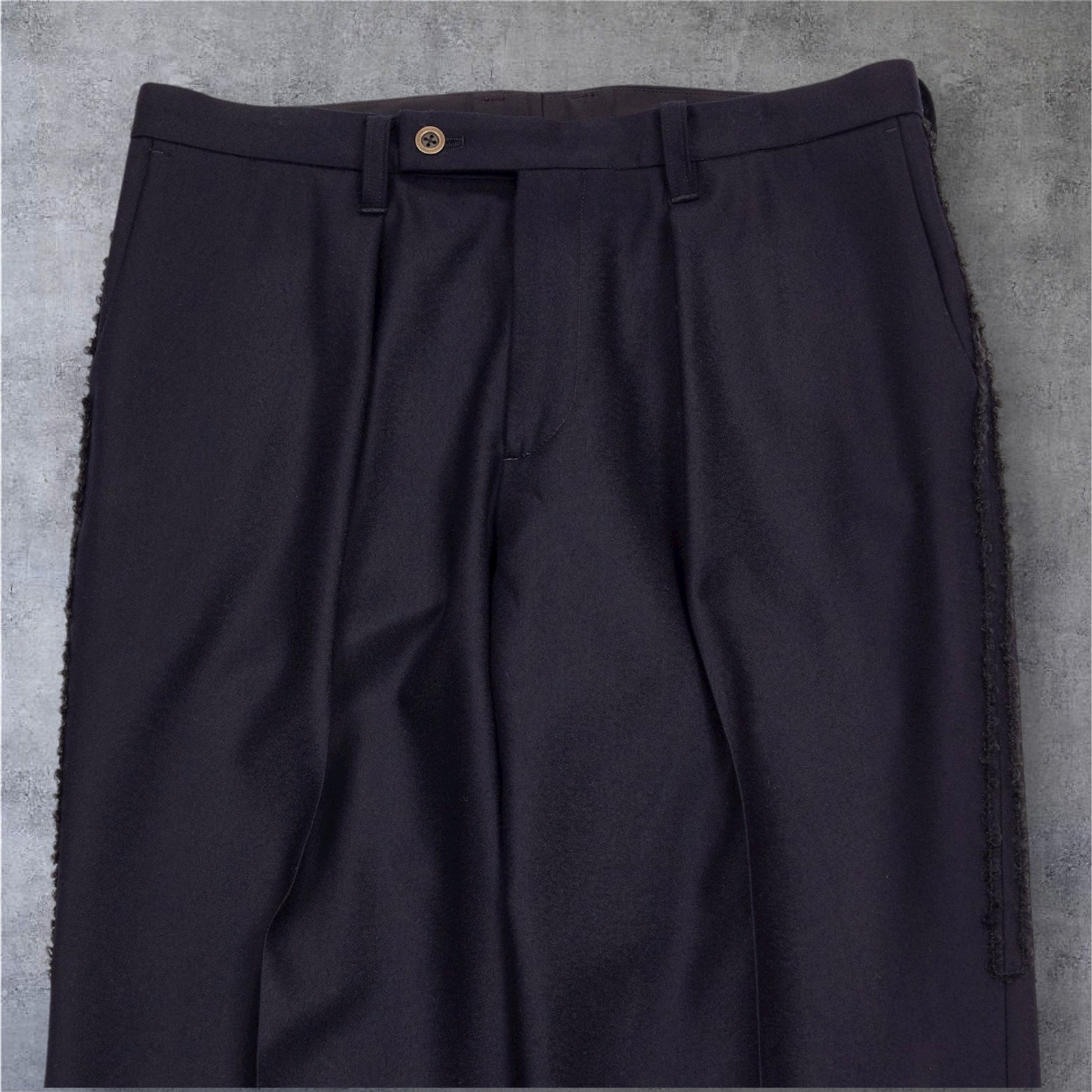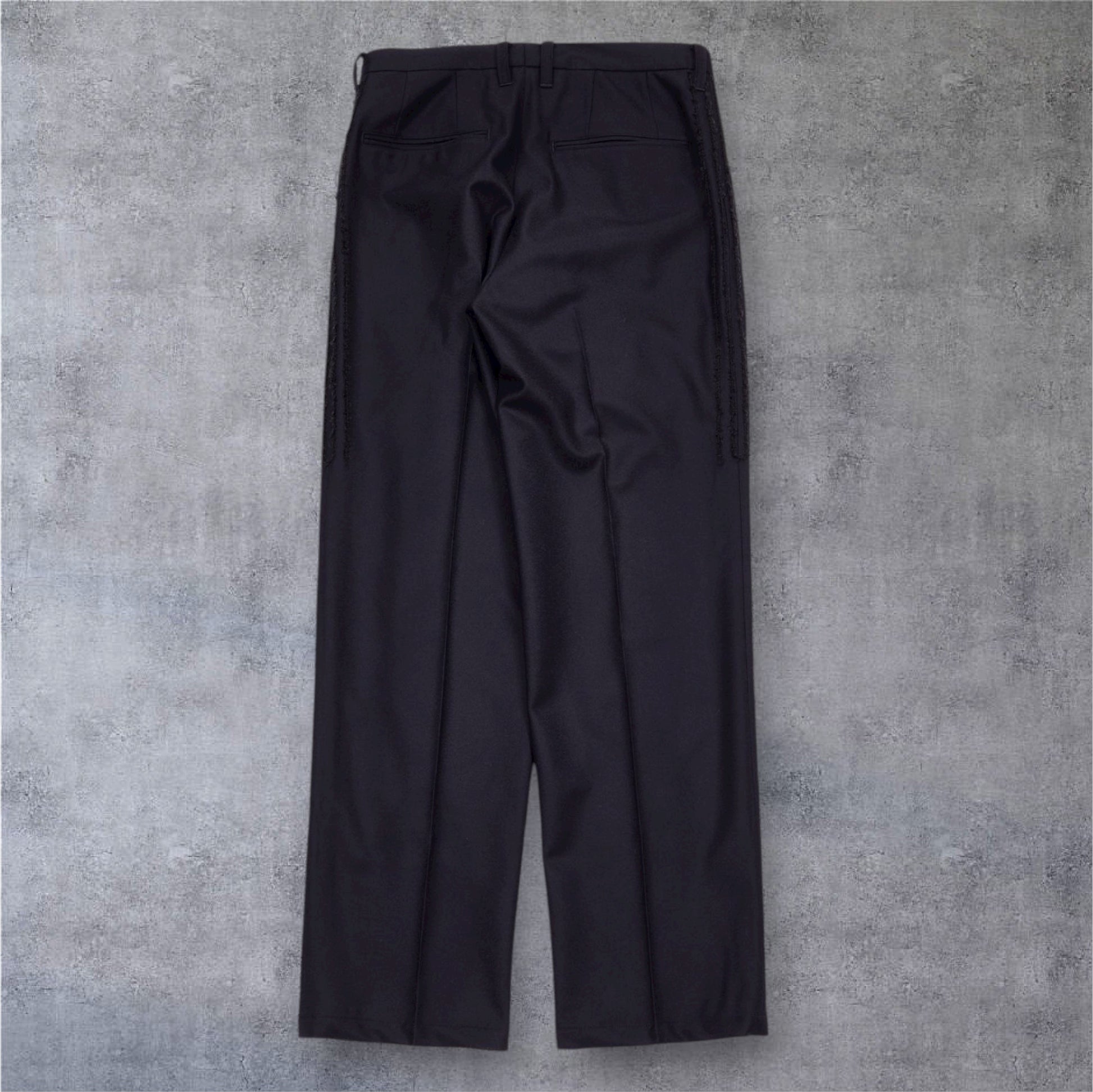 These classic wool flannel trousers are defined by a single, striking detail: a three-dimensional emblem, meticulously embroidered in black cord. Cut in a versatile, moderate silhouette, they offer the timeless feel and superior comfort of 100% pure wool, making them anything but basic.