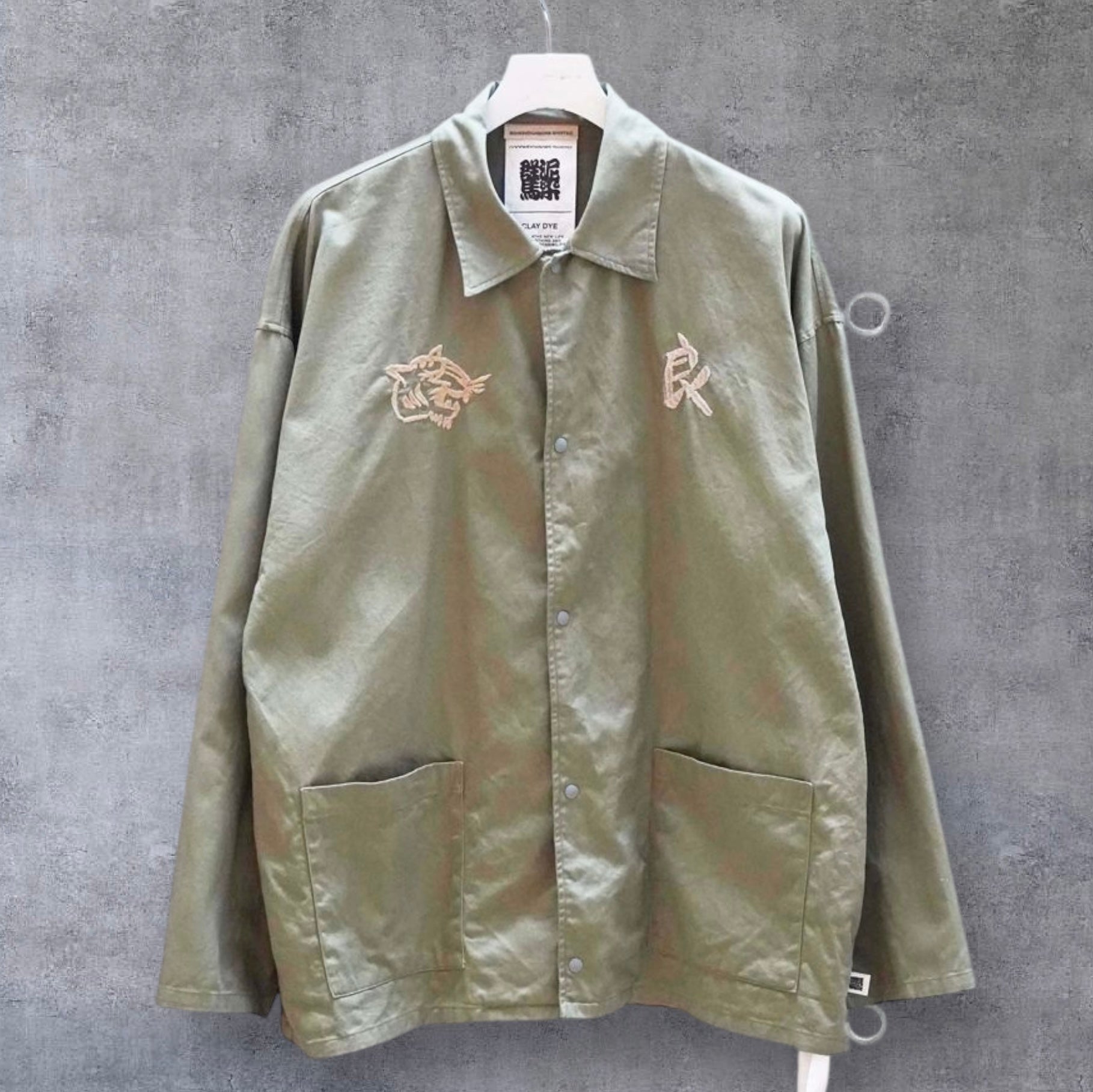 A vintage-inspired, wide-fit utility jacket crafted in durable cotton. This piece features a classic snap-button front, two spacious patch pockets, and subtle tone-on-tone embroideries. Finished with a practical back loop.